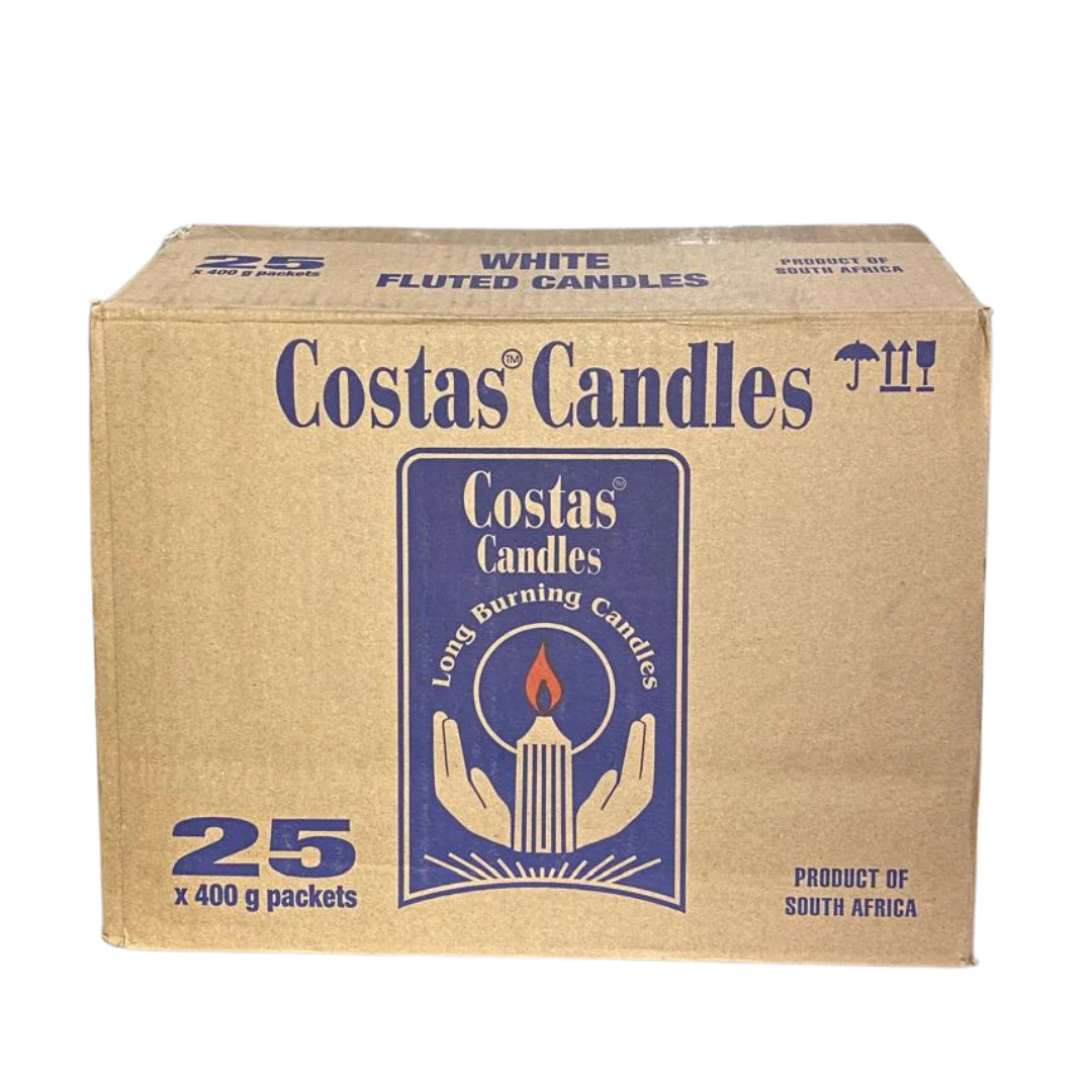 White Flute Candles. Domestic candles fit for households. Flutted ribbed ensuring a speady 6 hour burn.